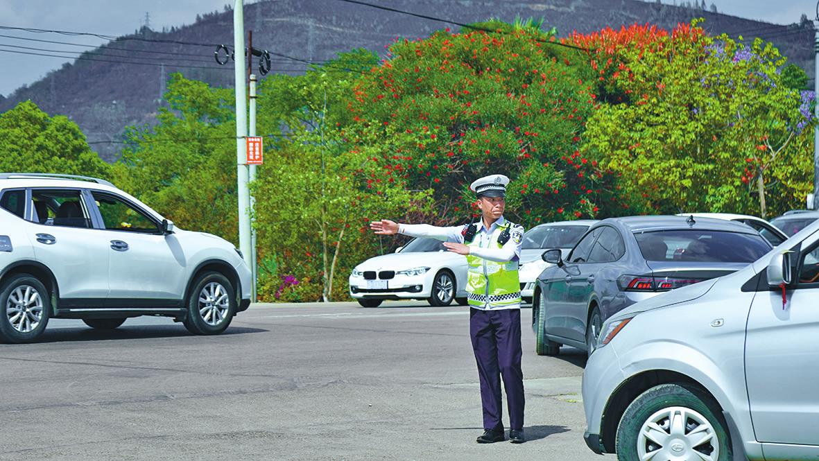 “五一”假期,澄江市各热门景区景点迎来了人流车流高峰,为保障道路交通环境安全、畅通、有序,澄江市公安局交警大队全警出动,坚守岗位,一抹抹荧光绿诠释了“劳动最光荣”,也成为了这个假期路上最美“警”色。