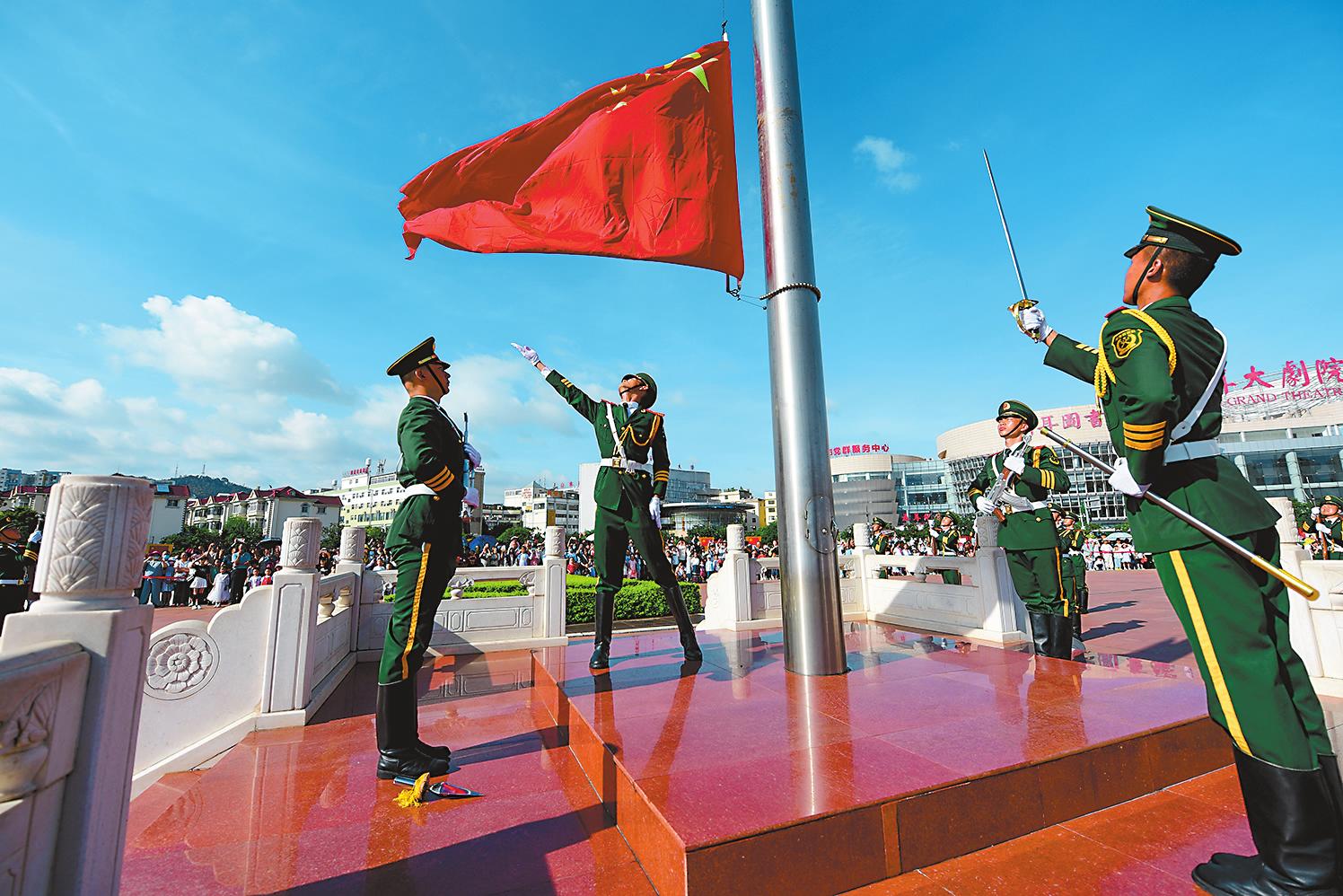 本报讯(记者 李晓兰 李丹)7月1日上午9时,“七一”建党节升旗仪式在聂耳广场隆重举行,庆祝建党102周年,继承和发扬党的光荣传统和优良作风,持续开展好“同升国旗·同唱国歌”活动,擦亮“聂耳故乡 红色之城 音乐之都”城市名片。 市委书记王力,市委副书记、市长江华,市人大常委会主任聂涛,市政协主席李劲松出席活动。 上午8时30分,聂耳广场人头攒动,各界群众从四面八方陆续来到这里,等待国旗升起的庄严时刻。少先队员、共青团员代表分别唱响中国少年先锋队队歌《我们是共产主义接班人》和《光荣啊,中国共青团》向党致敬。9时整,武警玉溪支队国旗护卫队迈着铿锵有力的步伐,昂首挺胸护卫着国旗走上升旗台。随着雄壮的国歌声响起,千余名党员、群众面对国旗肃立致敬,行注目礼,并齐唱国歌,用激昂的歌声庆祝党的生日。 在王力的带领下,现场全体党员集体重温入党誓词。 王力为部分老党员颁发“光荣在党50年”纪念章。今年,全市计划对中国共产党党龄满50年的党员颁发“光荣在党50年”纪念章682枚,其中年龄最大的85岁、年龄最小的68岁。 市委常委,市人大常委会、市政府、市政协领导班子成员及其他厅级领导参加活动并到聂耳纪念馆开展党性教育,聆听聂耳和国歌的故事。 |