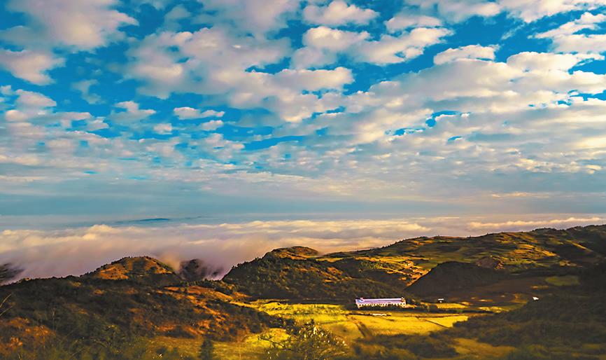 □ 刘贵能 文/图 梁王山,古称装山。据《后汉书·郡国志》记载:“俞元,装山出铜。”即指澄江梁王山出铜。另据《道光云南通志稿》记载:昔有虎自碧鸡关渡滇池窜到梁王山为民害,土人造栅取之,蛮语称“虎”为“罗”,“栅”呼之为“藏”,“虎栅”为“罗藏”,故装山又称为罗藏山。元朝时,梁王在山上立寨,明初梁王把匝剌瓦尔密听说曲靖城被明军攻破,逃入罗藏山,来来去去,民间便将罗藏山呼为梁王山,并沿袭至今。 梁王山素有“滇中第一名山,云南王者之山”的美称,有“一山分四季,四时景不同”之美誉,有“四面不同景,十里不同天”之独特景致,“罗藏朝云”也成了古代澄江十景之一。 “早观日出晚观霞,俯眺江湖仰望雾”“春看杜鹃花烂漫,夏日凉风送爽来,秋深红枫铺锦绣,冬雪银妆玉瑶台”和“春采蕨菜夏拾菌,秋摘野果冬剥笋”等民谣,是梁王山的真实写照。清初澄江诗人赵士麟七律《罗藏朝云》云: 地连北斗郁岩峣,晓起惟看旭景饶。 一缕寒烟迷谷口,千重白练绕山腰。 香灯直到上方见,云霭应从亭午销。 华岳名高须让此,遥知神女紫鸾朝。 此外,著名旅行家、地理学家徐霞客曾到访澄江,在考察抚仙湖时,一定能看到湖畔雄伟的梁王山。 梁王山为滇中的一座高山,以山巅为界,西侧属长江水系,东南面属珠江水系,山体飞跨澄江、呈贡两地。山的西面雄伟峻拔,神奇壮丽,壁峭千仞,鬼斧神工。东面群峰簇拥,林木参天,郁郁葱葱,神秘莫测,令人神往。人游其中,寂静清幽,云雾缭绕,使人产生新奇险妙的感觉。来到山顶,风荡荡而情动,云飘飘而神飞,天空洁净无染,湛蓝俊秀。 “万古钟灵奇,元气寒高厚,何处是陡巅,披襟天左右。”这些诗句写出了梁王山主峰磅礴的气势。“登东山而小鲁,登泰山而小天下。”今登梁王山而小滇中,立于山巅,令人心旷神怡,真有“居高临下,万山来朝”之感。一山观“四海”,放眼望“三江”。游客登一峰而饱览滇池、抚仙湖、星云湖、阳宗海和南盘江、玉溪大河、螳螂川秀丽风光。南有容貌绮丽、气质娴静的抚仙湖和星云湖。西有光滑透亮如横卧巨鲸的五百里滇池。东北有水如碧玉的阳宗海。南有玉溪大河,云遮雾挡,忽隐忽现。西南有螳螂川,波光闪闪,静静流淌。东有南盘江,蜿蜒如白练,隐入山谷。 绿意葱茏的万亩草场、如同仙境的“罗藏朝云”、千年一遇的“五彩瀑布”、连绵起伏的18个绿色“蒙古包”等气势磅礴的风光,使梁王山显得格外壮观。3月至5月间盛开的杜鹃花,把梁王山装点得格外秀美,让众多游客流连忘返。山里出产的特色美食苦荞粑粑蘸蜂蜜、高原老腊肉、烤全羊、纯天然的野生菌和山茅野菜,令人馋涎欲流。同时,高山森林又在盛夏为游客提供了清新洁净的空气及良好的避暑休闲胜地。 相传,公元1253年,忽必烈率十万大军进军云南,万里袭滇,乘革囊强渡金沙江。平定云南后,忽必烈封其孙甘麻剌为元在云南的王政代表,称梁王。 元末,中原元朝军队被朱元璋消灭,明军将进攻云南。为与明军对峙,第四代梁王把匝剌瓦尔密看中梁王山地势险要,视野开阔,草肥林密,易守难攻,在主峰北侧较平缓的山地建立了大、小军事教场,驻屯练兵。又在主峰北侧下的菜花坪种菜,修建跑马场、花园、凉亭、寺院等基础设施,梁王山白云生处有了人家,有了袅袅炊烟,有了牛铃悠悠,有了牧人和樵夫高亢嘹亮的“喊山调”。当时,云南每年要向元朝廷进贡良马2500匹,后改贡给梁王,梁王将一部分马匹放养在山上,修池饮马,现今的饮马池村由此得名。在这期间,梁王搜罗昆明宫中金银珠宝,藏匿于梁王山石洞,留下了“有九十九桶金,九百九十九桶银”的神秘传说。 今天,在梁王山上,元代梁王遗留的多处军事遗址和传说,还在激发着游人思古之幽情和探秘之遐想。 |
