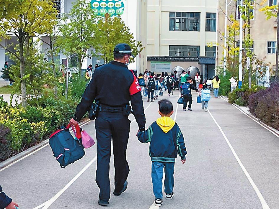 本报讯(通讯员 赵芳 华于帆 文/图)“谢谢警察叔叔,您辛苦了!”一句甜甜的感谢,让“护学岗”的民警心里暖洋洋的。近日,在通海县河西中心小学,一名小男孩紧紧地拉着民警温暖的大手,一瘸一拐地走向教室。 “您好,警察同志,我孙子昨天崴到脚,背不了这么重的书包进教室,能不能麻烦您帮忙送进去一下?”“好的奶奶,您放心。” 10月13日7时30分许,通海县公安局兴蒙派出所民警到河西中心小学开展“护学岗”工作时,一名送孙子上学的老奶奶走到民警面前称,孙子前一天崴到脚了,担心他背不动书包,希望民警帮忙送到教室。 民警俯下身问:“小朋友,用不用叔叔抱?”孩子说不用抱,自己可以慢慢走。民警左手拿起小书包,右手牵起小朋友走向教室,边走边表扬孩子脚受伤仍坚持上学,是个优秀的孩子。 |