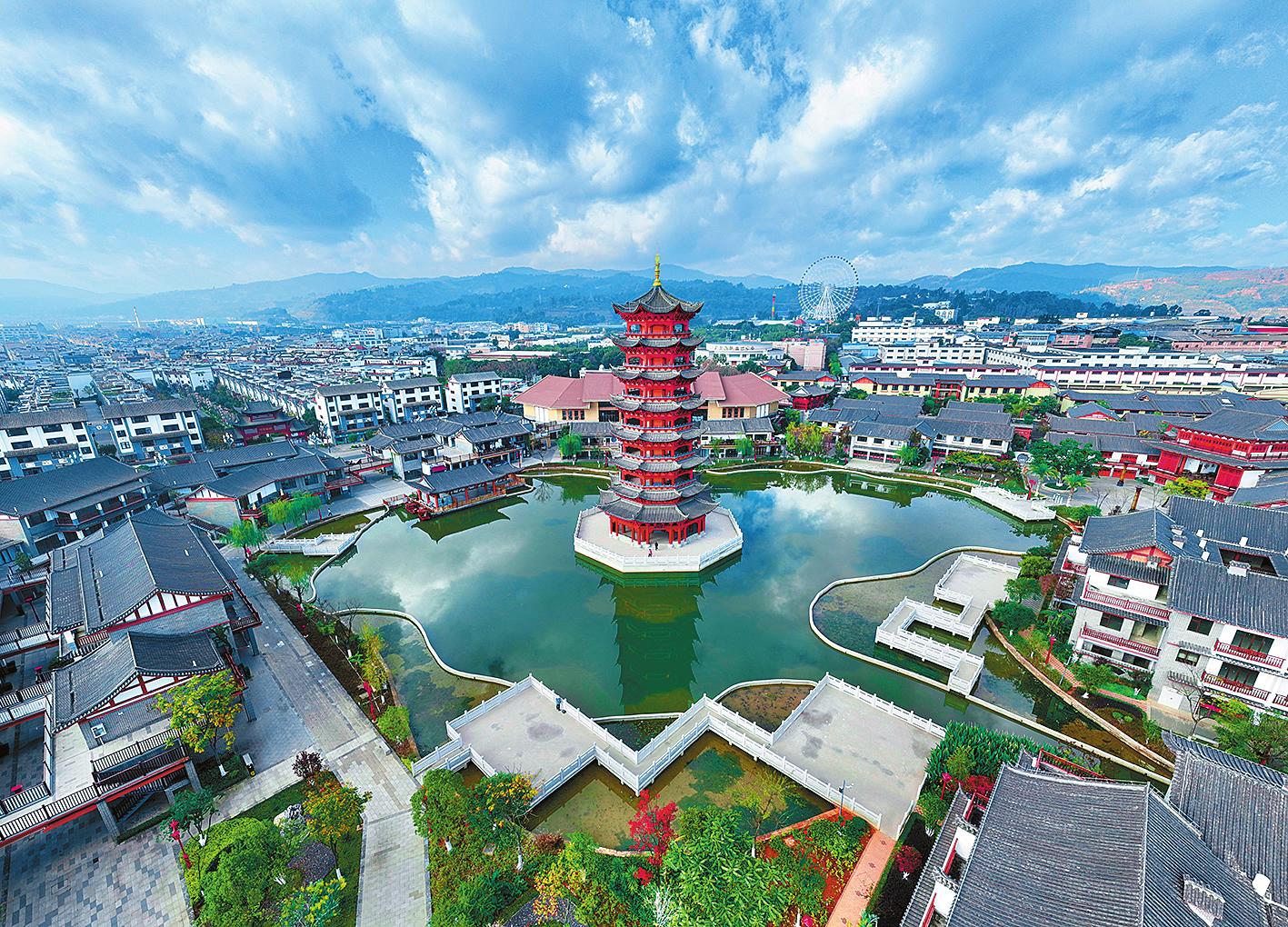 深化改革 筑牢共同富裕根基 大营街社区的发展源于创新。在农村产业结构调整和现代企业制度建立大潮下,社区探索出一条“留优质的集体企业保共同富裕”的改制之路。采用承包经营、租赁、拍卖、转让、股份制、兼并等多种形式,社区深入开展产权制度改革,保留8个骨干集体企业,形成以集体经济为主、多种经济成分共同发展的经济结构,集体经济不断发展壮大,进一步筑牢了共同富裕的物质根基。 聚焦壮大集体经济、带动产业发展和群众增收致富目标,社区建设了汇溪公园、玉泉湖等文化生态休闲区,打造了汇龙生态园、映月潭修闲文化中心2个国家4A级旅游景区,逐步形成了以“米线文化节”、汇溪记忆馆等为代表的民俗民间文化,以烤鸭、菌子宴及不同品种米线为代表的饮食文化,以温泉康养、休闲度假为主体的休闲文化,吸引了大量国内外游客前来旅游观光,社区成为玉溪旅游的新地标。 打好生态绿色发展牌,走实乡村旅游发展之路,为推动大营街社区在共同富裕中走在前列注入了强劲动能。