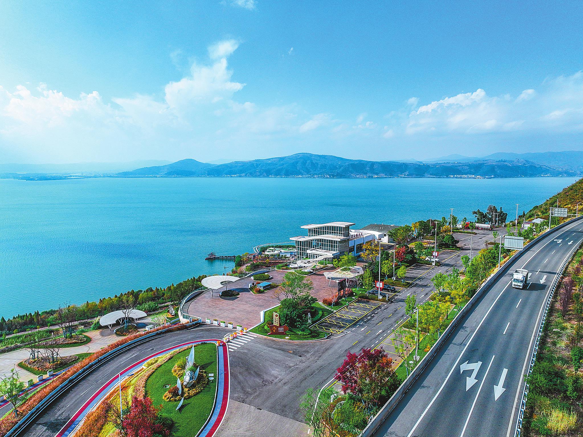 澄川高速星云服务区,背靠棋盘山、前临星云湖,游客在服务区可休憩、可远眺星云湖美景,也可沿环湖路步行前往湖边,欣赏湖光山色。 本报记者 沈阳 摄