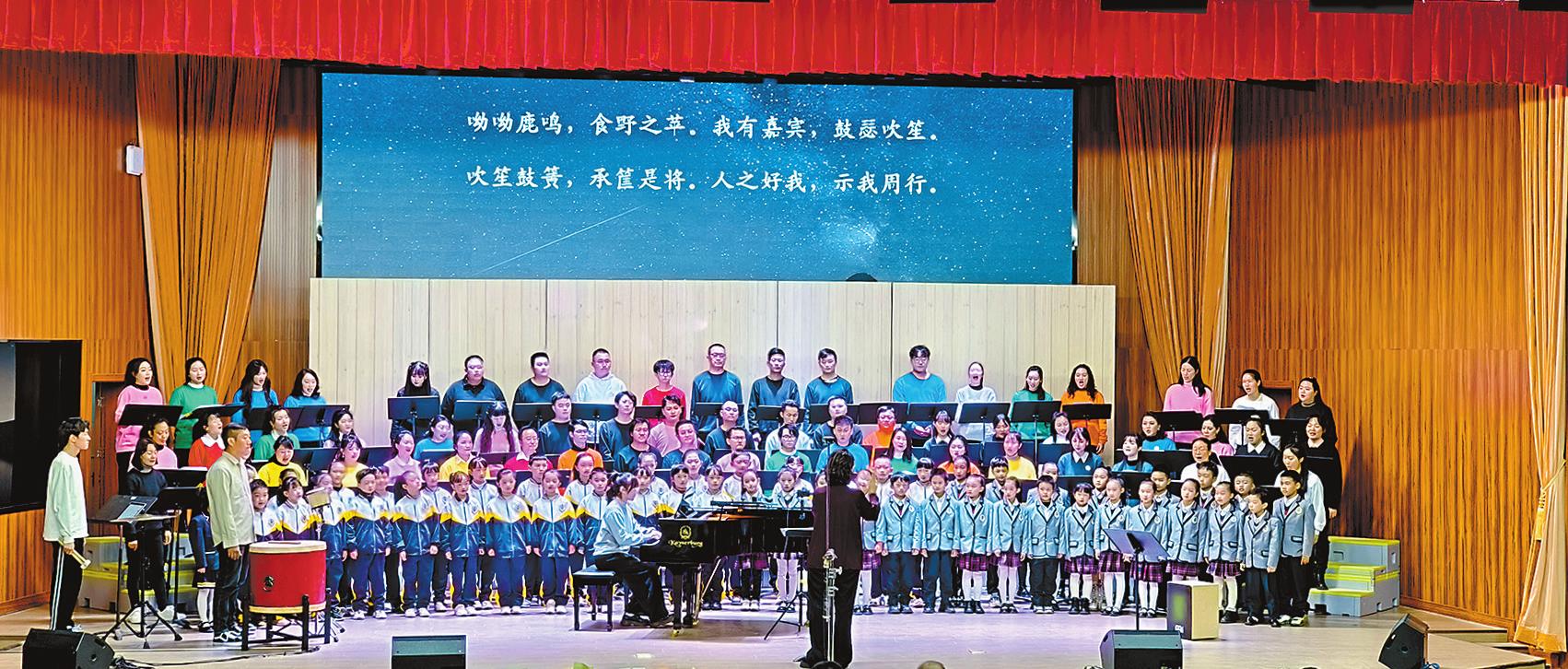 本报讯(记者 冯天娇 文/图)1月18日晚,“长歌相合 乐启新声——玉溪聂耳教师合唱团2024年新年合唱音乐会”在玉溪师范学院附属小学唱响。 此次活动由玉溪市委宣传部、玉溪市聂耳文化中心、共青团玉溪市委指导,玉溪市教育体育局主办,玉溪师范学院附属小学承办。 音乐会现场,玉溪聂耳教师合唱团分4个篇章演绎了14首经典曲目,或优美婉转、欢乐律动,或古风悠扬、气势恢宏,为观众呈现了一场传统与现代交融的视听盛宴。特别是一首出自《诗经》的古风曲目《小雅·鹿鸣》在合唱团教师空灵悠远的和声、玉溪师范学院附属小学同学们清澈婉转的童声朗诵,以及铿锵有力的节奏鼓点配合下,犹如天籁之音唤醒了观众内心深处的文化基因和文化自信,将现场气氛推向高潮。古典诗词与现代音乐的碰撞,让古典之美加以升华,在合唱的演绎下焕发新的活力。 在1月15日的排练中,《小雅·鹿鸣》吟唱视频上传到社交媒体后迅速“出圈”,被新华社、人民日报等多个账号转发,引发数十万网友点赞、上亿网民关注,大家表示“仿佛听到了一场穿越古今的音乐盛宴,一下子回到了古代宴请宾客的样子,是一场穿越时空的美好邂逅”“听到了传承”“原来诗经唱出来这么美”“希望能走上更高的舞台”…… 《小雅·鹿鸣》的未演先火,对玉溪聂耳教师合唱团的教师来说并不感到意外。“玉溪是人民音乐家聂耳的故乡,有着深厚的音乐文化基础。合唱团成立以来,我们排演的很多曲目都如《小雅·鹿鸣》一样,既强调音乐的艺术性,又弘扬优秀传统文化。”玉溪聂耳教师合唱团指挥普海玲说,“当合唱遇上经典诗词,当优秀的编排被恰如其分地表达,就能最大限度展现诗歌蕴含的美,直击人心,引发共鸣。在吟唱中深刻理解意境,有利于建立文化自信和培育文化自觉。” 玉溪市聂耳文化中心副主任唐雅馨表示,任何一部优秀作品的产生,都离不开一方水土、人文的培育。《小雅·鹿鸣》的“破圈”出彩,是玉溪市坚持不懈讲好“聂耳和国歌的故事”的必然结果。多年来,我市通过举办聂耳音乐周、“聂耳杯”合唱展演、童声合唱节等系列活动,推动全民音乐文化活动的发展和繁荣。目前,仅在全市教育体育系统就活跃着近百支聂耳合唱团,通过排演优秀合唱节目、开展合唱活动,把聂耳的爱国精神和优秀传统文化的种子播撒到广大青少年心中。 玉溪聂耳教师合唱团成立于2022年8月,团员以全市一线音乐教师为主,成立至今已开展9场巡演及专场音乐会,真正成为讲好“聂耳和国歌的故事”的“宣传队”,通过演出与交流传播高雅艺术,推广合唱教育,推动全市学校学生合唱团发展。 |