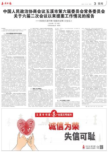 中国人民政治协商会议玉溪市第六届委员会常务委员会关于六届二次会议以来提案工作情况的报告