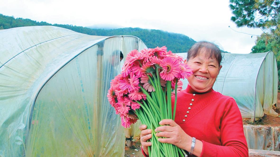 近日,在新平县新化乡白达莫村非洲菊种植基地,工人穿梭其间,忙着采花、除草。据悉,白达莫村今年共栽种非洲菊110亩,预计产值200万元。近年来,新化乡按照“稳烟保粮优菜扩花精畜”的产业发展思路,积极调整农业产业结构,充分利用现有资源,引导农户发展特色产业,种植非洲菊。