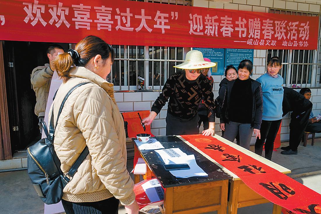 1月18日,峨山县人大常委会联合县文联、县书协到岔河乡文山村开展迎新春赠春联活动,将一幅幅充满喜庆、吉祥、祝福的春联送给村民,营造出欢乐祥和、喜气洋洋的节日氛围。 本报记者 宋蝶 摄