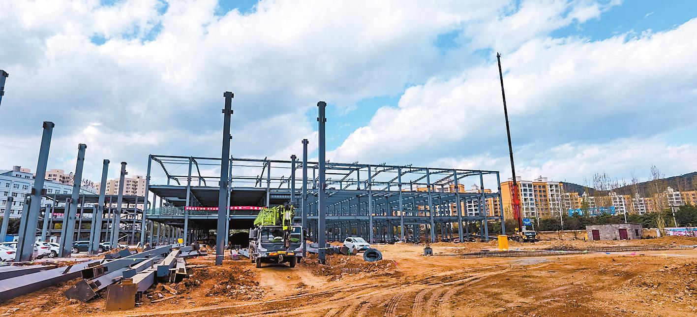 2月6日,在易门县标准化新型综合农贸市场合作开发项目施工现场,施工人员正紧张有序地作业。据悉,该项目计划投资1.8亿元,预计今年上半年竣工运营。项目建成后,将极大地改善县城的市容市貌,方便群众生产生活,预计每年为龙泉街道村级集体经济创收270万元。