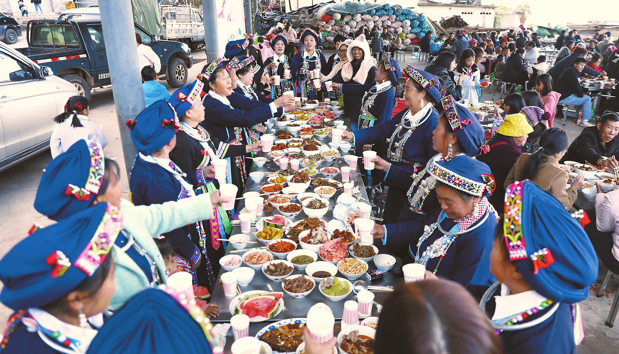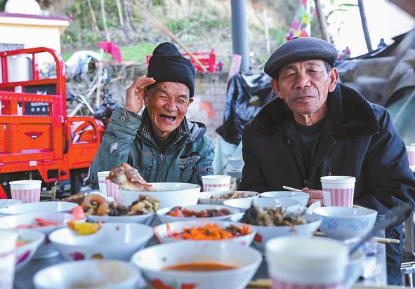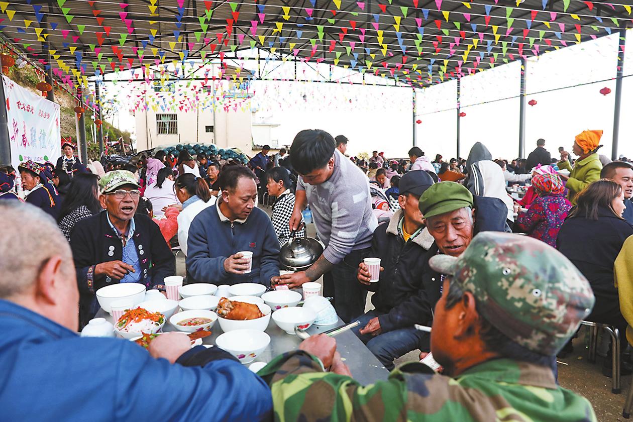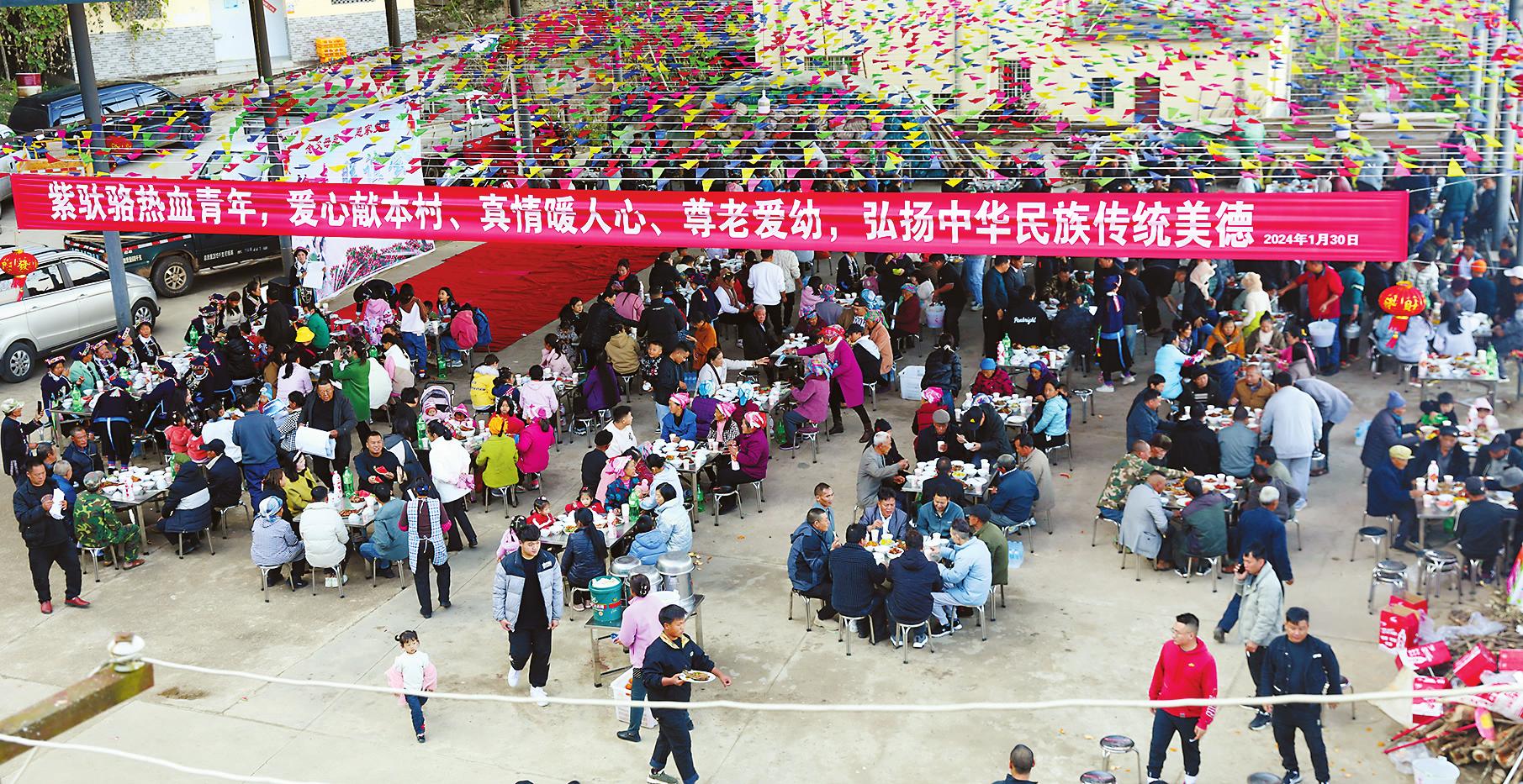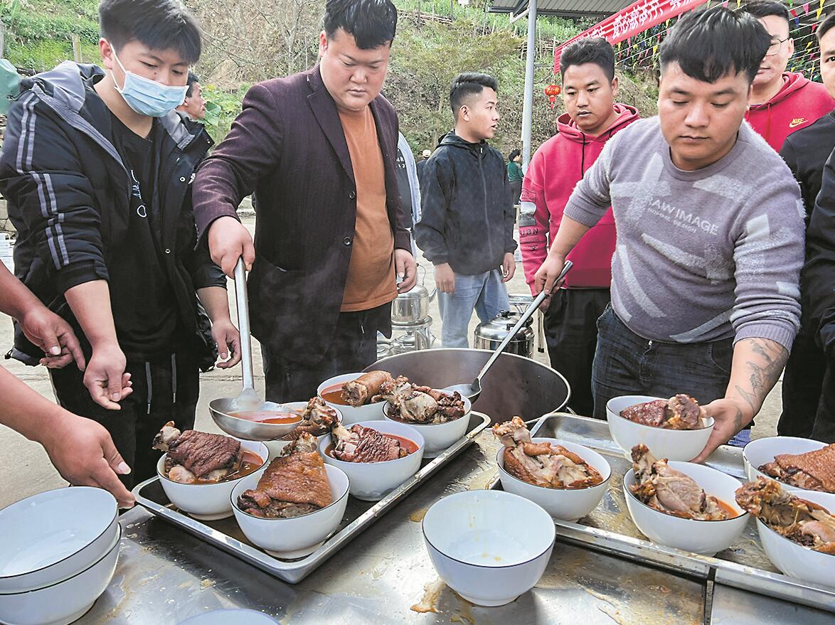 1月30日,气温回暖,元江县咪哩乡瓦纳村委会紫驼骆村民小组下寨的年轻小伙们早早汇聚到村里的广场上,他们的热情也像这回暖的天气一样,大家各司其职地忙碌着,有的在布置表演的舞台,有的在准备食材,有的在广场布置晚宴的场地。这一天,对于下寨的村民来说,是春节前最隆重的一天,因为这天是全村人的年饭时间。 随着社会经济的快速发展,下寨的年轻人从山村到城市,投入到各行各业中发光发彩,平日里大家忙工作难以相聚,春节让这些在外打拼的年轻人聚在一起,看着家乡变得越来越美,看着村里老人佝偻的身影,于是这些心怀感恩的年轻人便发起了宴请老人吃年饭,团圆过年的想法。 下寨全村吃年饭是从去年开始的,由村里在外务工的小伙石云伟首先发起,而后得到村里年轻人的响应,大家纷纷表示支持,出钱出力共同筹办一年一度的年饭,如今已经发展成全村一年一度的盛事。在广场旁的厨房门口可以看到一张红榜,上面记录着大家捐款金额,从100元到2000元不等。 “我们创建了一个村里年轻人的组织群,活动也是在群里发起,筹办晚宴的初衷是想让村里老人在春节前好好吃一顿,我们这些年轻人给他们提前拜年,让他们开开心心过春节。因为反响很好,现在全村人都一起加入,大家有钱的出钱,有力的出力,团结起来办一顿热闹的年饭。今年我们杀了一头猪、一头牛,摆了75桌,全村人在一起吃两天。”石云伟告诉记者。 今年77岁的村民陈文荣告诉记者,村里的年轻人很团结,也很有孝心,作为长辈,他很支持这些年轻人搞这样的宴会,而自己更是鼓励孩子积极参与。“我儿子在县里从事广告行业,这次活动的横幅、舞台的背景墙就是他弄的。他们能举办这样的活动让村里老人很欣慰,村里尊老爱幼的风气愈发盛行,这也是在身体力行地教育下一代要有感恩之心,希望新一代的孩子也能学习父辈,让敬老爱老成为可以传承下去的乡村文化。”陈文荣说。 其实,紫驼骆下寨的年轻小伙们回村不光筹办村宴,他们还组织起来为村庄建设做一些力所能及的事,而这些,村里的老人都看在眼里,更是为他们竖起了大拇指。“我们村的这些小伙真的很不错!他们对村子的情感很深,看到回村道路两旁长满杂草,他们便自发组织起来,带上工具一天就把杂草清除了。”60岁的村民周金福告诉记者。 吃年饭的初衷从去年的宴请老人发展到今年的全村参与,其中饱含着村里年轻人对老人的孝心,更让在外打拼的年轻人感受到家乡的温情,纵使身在千里之外也有家乡的记挂。全村的年饭让大家聚到一起,感受浓浓的年味、暖暖的乡情。 平时在外务工的年轻人张伟大部分时间不在村里,只有节假日回来。他告诉记者,这次特意带着孩子提前回来参加村里的宴会,就是为了能和村民们聚一聚。“平时大家都是孤零零地在外打拼,能这样每年聚在一起吃一顿团圆饭,大家都觉得格外开心,都能够感受到来自家乡的温暖。”张伟说。 夕阳西斜,村里的广场愈发热闹起来,参加晚宴的村民陆续到来,孩子们三五成群地追逐打闹,老人们拄着拐杖谈笑而至,还有身着盛装的文艺队队员也款款而来。经过一天的忙碌,一道道美味陆续从厨房端出,村民们纷纷落座,品尝美食,举杯共饮,大家互道祝福,品味当下的美好生活。大家举杯敬酒,边喝边拉家常,热闹、和谐的气氛弥漫全场。 暮色四合,能歌善舞的哈尼族妇女开始跳起舞来,在灵动的舞姿中、在晃动的酒杯中、在欢声笑语中,浓浓的年味扑面而至。 |