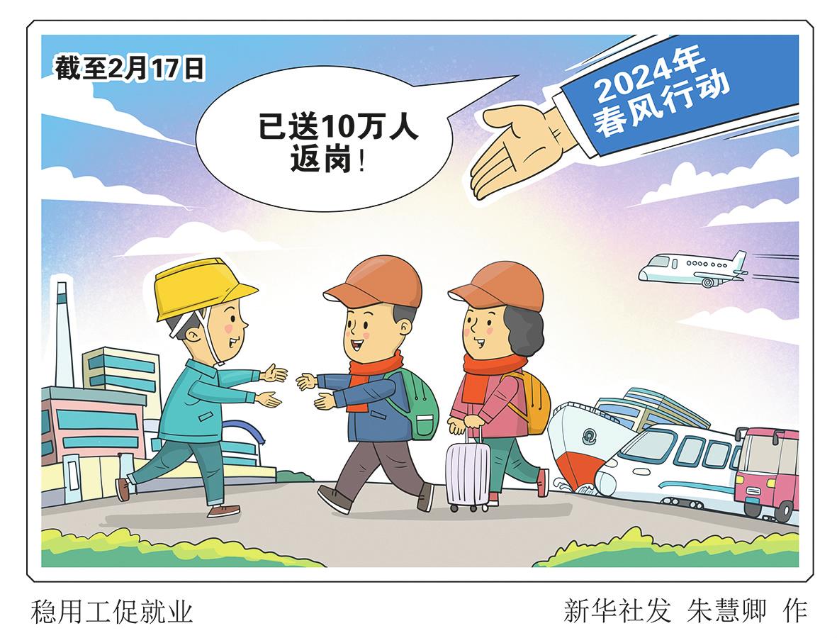 来自人力资源社会保障部的消息:截至2月17日,全国已累计举办各类招聘活动1.8万场,发布岗位1000万个;发出务工人员专车、专列、包机3000辆(列、架)次,输送劳动者10万人。 朱慧卿/作(新华社2月19日发)