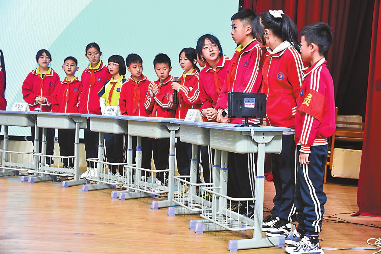 3月21日,玉溪第五小学举办“童心诵绿”春日诗词会。此次诗词会包含诗词常识快问快答、成语赞春、诗词诵绿飞花令、朗诵表演等环节,通过趣味性强、形式多样的活动,全面检验学生对古诗词的理解和掌握程度,进一步加强学生对中华优秀传统文化的认知与学习。 当天,精彩的开场表演结束后,五、六年级全体学生在学校多功能厅展开竞赛。各班学生按照抽中的题目流利地背诵古诗词,并回答问题,《长歌行》《四时田园杂兴·其三十一》《稚子弄冰》……学生们的精彩表现赢得了一阵阵热烈的掌声。从“春暖花开”“冰雪消融”到“万物复苏”“春光明媚”,从“夜来风雨声,花落知多少”到“我家洗砚池头树,朵朵花开淡墨痕”……激烈的成语接龙和飞花令一度将比赛推向高潮。台上的选手深思熟虑、积极抢答,台下的学生也纷纷给予提示。经过激烈角逐,最终评选出一、二、三等奖。 六年级(4)班学生谢涵炆说:“我非常喜欢阅读古诗词,那些优美的文字仿佛在引导我和古人交流,让我从中领悟中华文化的博大精深。” 为激发全校学生诵读古诗词的兴趣,让学生感受和领悟诗词之美,玉溪五小还在学校大厅设置诗词诵绿飞花令活动打卡点,鼓励学生利用大课间或放学时间对诗打卡,全面展示自我风采。“近年来,学校通过开展诗词大会、亲子诵读、书香班级等活动,让学生养成良好的读书习惯,继承和弘扬中华优秀传统文化。”学校有关负责人说。 (通讯员 张婵娟 文/图) |