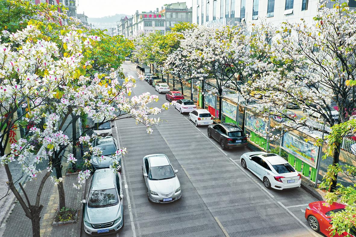 3月27日,玉溪市红塔区人民法院附近的玉荷花竞相开放,一朵朵粉白相间的玉荷花在枝头攒动,引得行人纷纷驻足观赏、拍照,成为玉溪春日里一道亮丽的风景线。 本报记者 邓星瑞 史忆康 摄