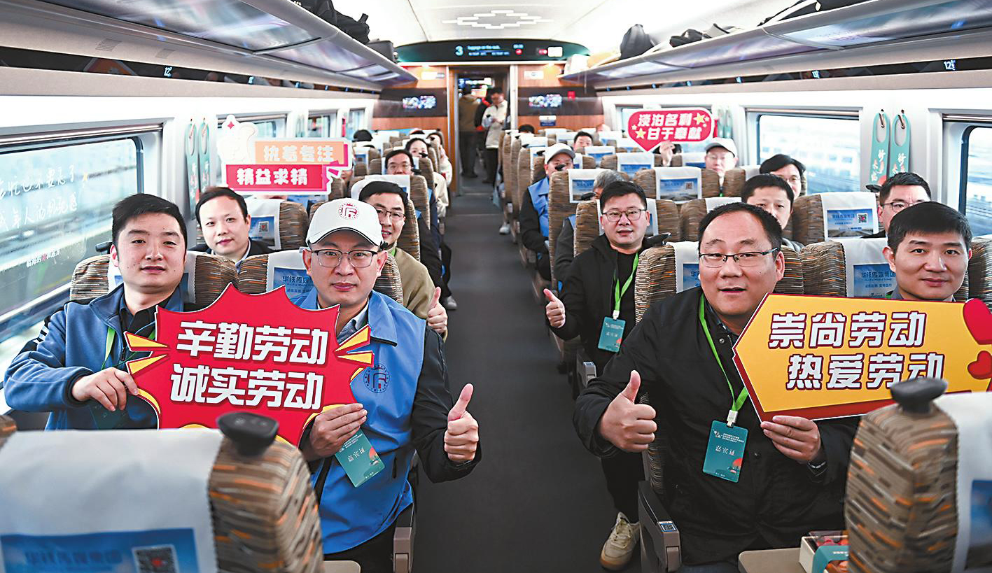 当日,全国首趟职工疗休养高铁专列从浙江杭州东站始发,浙江省劳模工匠、企业职工代表共400余人乘坐复兴号智能动车组经杭台高铁到达台州临海市。铁路部门将根据各方需求继续组织开行高铁专列,更好地服务职工群众,助力沿线文旅产业发展。