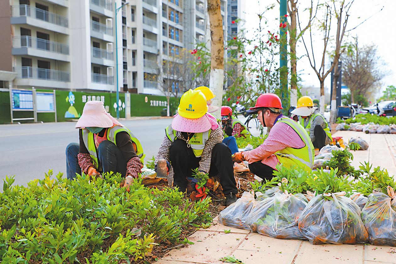 近日,在澄江市澄波路,绿化工人正在移栽绿化带花卉苗木。连日来,澄江市抢抓春季有利时机,对城市主次干道绿化带植被进行大规模补植补种、培育养护,以良好的景观扮靓城市,让春日的城市绿意更浓。 通讯员 阮刘海 曹敏 摄