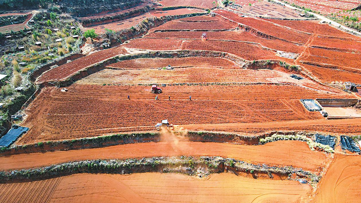 眼下,在峨山县塔甸镇的田间地头,农机手正娴熟地操作着大型犁地机来回穿梭,犁田翻地,奏响烤烟备耕“进行曲”。机械化耕地不仅节省时间、人力投入,还能提高生产效率、降低种植成本。 通讯员 李开才 沈菲 摄