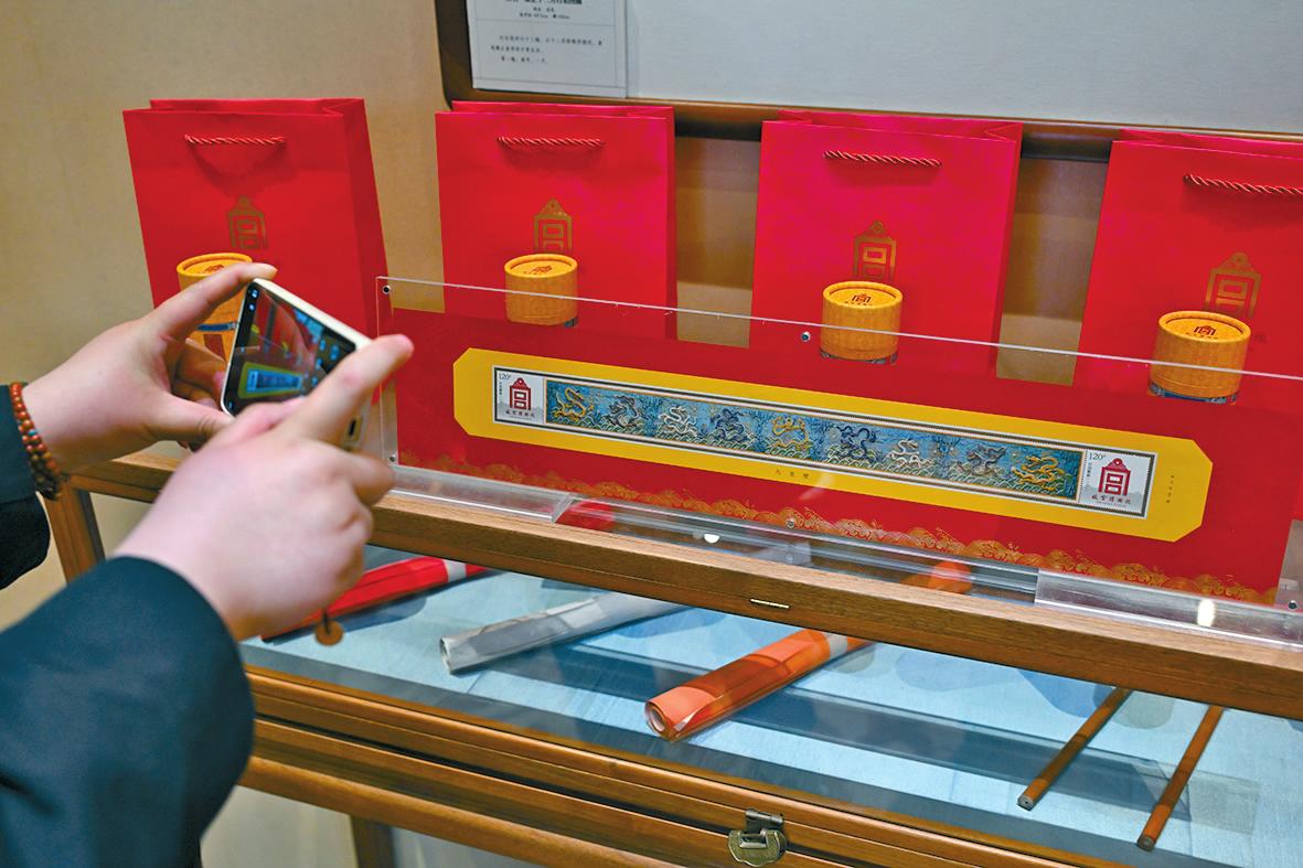 4月7日,记者在发布会上拍摄《九龙壁》个性化邮票。当日,由故宫博物院与中国邮政集团有限公司主办的“‘宫’邮万里 四季安康——甲辰系列主题邮品”发布会在北京故宫博物院举行。本次发布会,故宫邮局推出《四季故宫》藏书票、《甲辰太和》《九龙壁》个性化邮票、《龙抬头》《龙腾紫禁》邮册等多款甲辰系列主题邮品,在邮票方寸世界中呈现故宫四时美景与院藏珍宝。