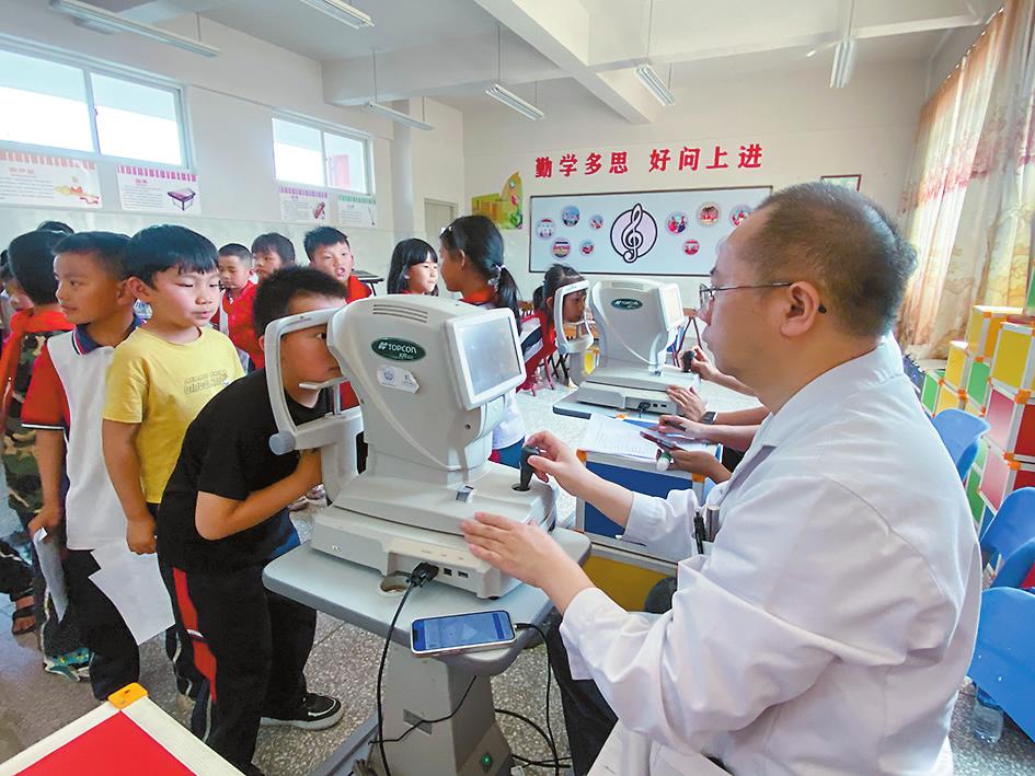 4月15日,眼科医生在红塔区北城街道莲池小学为全校300多名学生进行视力普查及屈光度检测。日前,由红塔区教育体育局、红塔区卫生健康局、红塔区红十字会联合开展的春季学期中小学视力普查活动启动。活动将对全区所有中小学校的学生进行视力普查、屈光度检测,以此全面掌握红塔区中小学生视力情况,进一步增强学生视力保护意识。 本报记者 李梅 摄