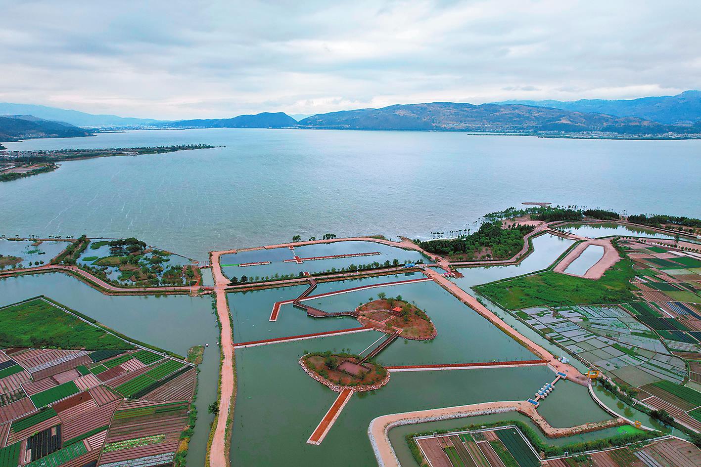 截得住—— 汛期前拦蓄带抽空、清淤、晒塘做足准备 管控好水资源,是事关治湖成败的关键。 去年以来,玉溪市委深入调查研究,用脚步丈量“三湖”,谋划提出实施“五位一体”湖外水资源循环利用综合性工程。在汛期来临时,把初期雨水、农田尾水、散漏污水等拦截引入拦蓄带;待汛期大雨冲刷后,经检测符合标准的清水流入湿地,过滤净化后汇入湖泊。而拦蓄带的水,通过建设完善的提水泵站和输水管网,提到高位用于农田灌溉,并配套推进高标准农田建设和水价综合改革,从而形成拦截、抽提、调蓄、灌溉、管理五个体系,构建起生态环保基础设施、农业生产用水灌溉、高效节水水利、高标准农田改造引水、高效林业发展用水“五位一体”的“三湖”湖外水资源循环利用综合性工程,推动水资源在湖外高效循环利用,实现清污分流、各行其道,为截住污水、清水入湖找到新的突破口。 为了应对好初期雨水,今年初以来,江川区在星云湖沿岸开展汛期前拦蓄带抽空、清淤、晒塘工作。积极发动沿湖村组干部群众,采取机械加人工方式,开展清河道、清湖滨带、清库塘、清沟渠等“一进七清”行动,清除枯萎水生植物、垃圾、淤泥、蓝藻等,种植红柳1.5万余株,腾出拦蓄带库容185万立方米、上游调蓄库坝库容358万立方米,为引导初期雨水径流入塘入库做好准备。 5月13日,记者在周官河末端湿地看到,经过几场雨后,这里已经蓄足了水。湖边的水杉林下,经过整治后湖滨地带干净清爽,透湖透景,更显宁静。
