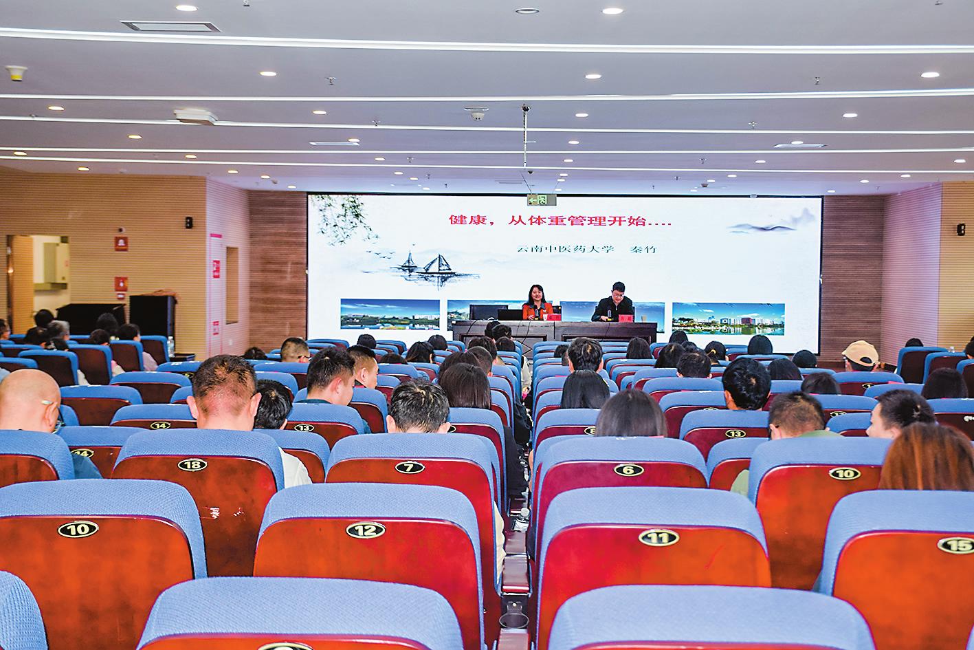 □ 本报记者 黄思敏 文/图 今年4月是第36个爱国卫生月,活动主题为“健康城镇 健康体重”。活动启动以来,全市各县(市、区)紧紧围绕活动主题,组织发动各单位、社会各界和广大群众以健康科普宣传、健康环境提升、病媒生物防控等为切入点,积极倡导健康生活方式,不断推动爱国卫生工作走深走实、提质增效。 广泛开展“健康体重”科普宣传 “我们将以这次健康知识讲座为起点,关注体重管理,自觉养成科学健康的生活习惯,以强健的体魄和充沛的精力投入到工作生活中去。”4月1日,一场以“健康,从体重管理开始”为题的专题讲座拉开了全市爱国卫生月活动序幕,230余人聆听讲座后纷纷表示受益匪浅。 爱国卫生月活动期间,全市各级各部门充分利用健康教育宣传栏、健康知识大讲堂、电视、报纸等,创新开展以“健康体重”为重点的健康科普宣传,累计邀请122名健康科普专家开展健康知识讲座260场次,实现“健康大讲堂”进机关、进学校、进企业、进工地、进乡村、进社区。针对饮食型肥胖、代谢型肥胖等常见体重问题,制作以普及《成人肥胖食养指南(2024年版)》为主要内容的全市第二季度健康教育宣传栏。 同时,各县(市、区)创新宣传形式,针对不同人群特点设计精准宣传内容,取得了较好的宣传效果。其中,澄江市策划推出健康达人揭秘“健康密码”系列短视频,选拔3名行业翘楚,将他们的健康生活奥秘以短视频形式轻松呈现给市民。在短视频推动下,澄江市如火如荼开展健康大讲堂、健康咨询点、健步走、减重比赛等线上线下健康教育活动。易门县开设《健康教育》和《国家卫生县》专栏,在电视上每天播放健康知识公益广告。新平县利用广播播放健康知识及爱国卫生月宣传标语,并立足戛洒镇傣族群众居多的实际,将健康知识翻译成傣语并制成小视频,在公共场所滚动播放,深受傣族群众喜爱。通海县整合部门力量,将爱国卫生月义诊、健康知识普及活动开展到养老院,为养老院老人进行健康体检,并教授养老院工作人员老年人合理膳食知识。