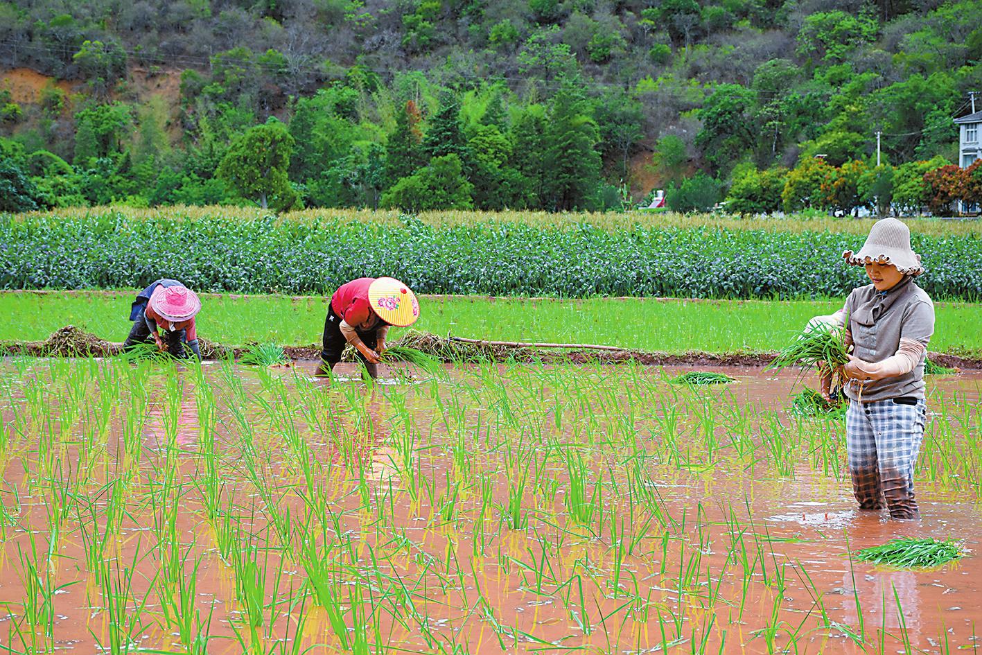 连日来,在新平县扬武镇丁苴村毛木树小组田间,农户们忙着插秧。“每年最迟6月中旬要把秧栽完。”农户刘庆娥说。记者从新平县农业农村局获悉,今年全县计划种植水稻8.2万亩。近年来,新平县通过示范推广水稻新品种、新技术,建设高标准农田,完善农田水利设施等措施,促进水稻生产提质增效。