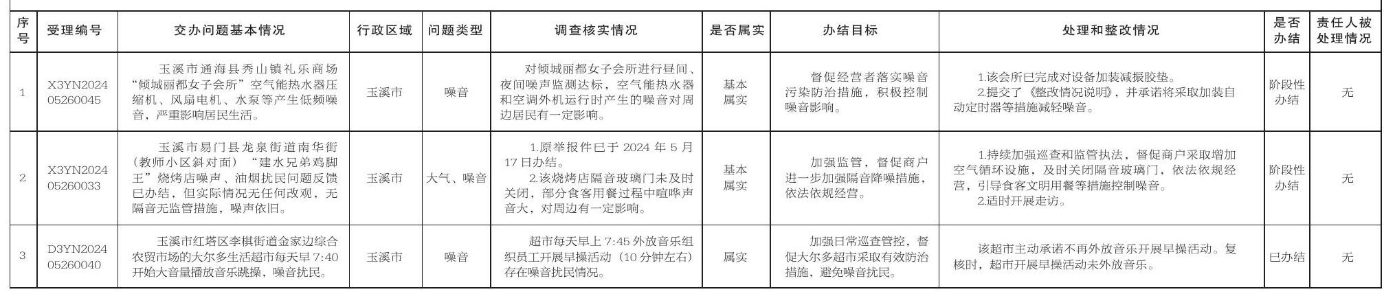 截至2024年6月6日,对中央第七生态环境保护督察组向玉溪市移交的第十七批群众信访举报件3件,各责任单位均按要求上报调查处理情况。