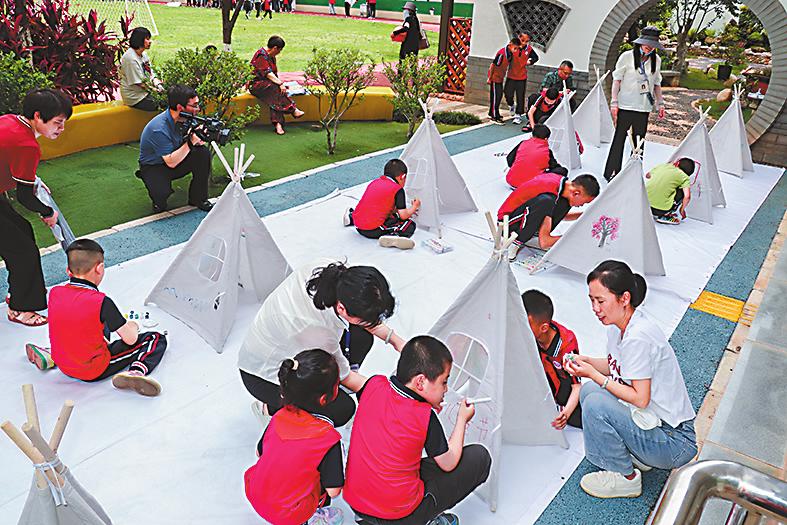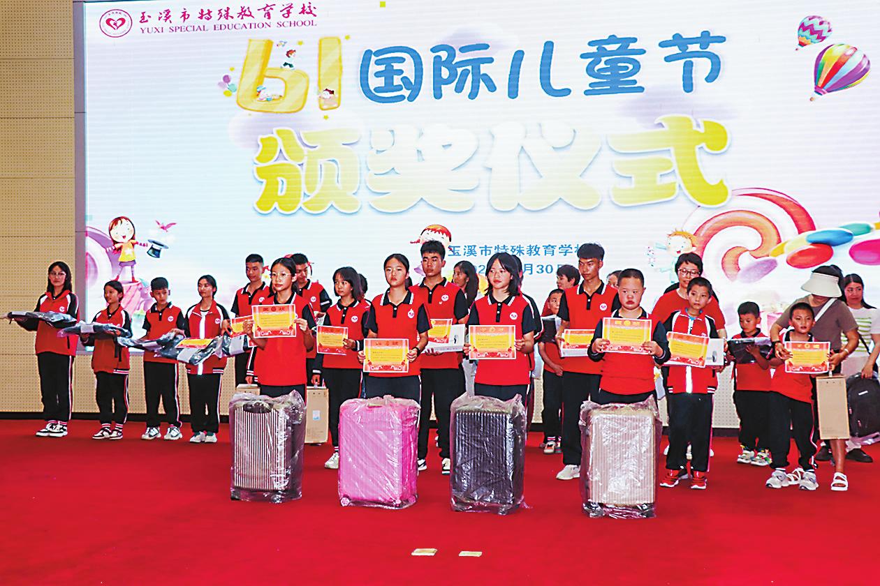 系列活动精彩纷呈 “准备着,为共产主义事业而奋斗!”5月30日下午,玉溪特校礼堂内,全体少先队员一起呼号,“红领巾爱祖国”入队仪式如期开展。在大家的共同见证下,23名新队员戴上红领巾,光荣入队,成为中国少年先锋队的一员。少先队员代表为新队员佩戴红领巾,全体队员在队旗下光荣宣誓,表达自己热爱祖国、好好学习,争做新时代好少年的信心和决心。 会上宣读了学校《关于组建少先队组织的决定》,共青团玉溪市委学少部、玉溪市少工委相关负责人为新建中队授队旗,并为中队辅导员颁发聘书。学校为2023―2024学年校级三好学生和在手抄报、绘画比赛中获奖的学生颁发奖状、奖品。 随后,游园活动欢乐启幕。玉溪特校根据学生特点设置了10余个游戏项目,孩子们在父母的协助下一齐参与蒙眼取水、抢凳子、投壶等游戏,校园里,加油声、喝彩声、欢呼声此起彼伏。 本次儿童节还设置了彩绘和涂鸦区域,孩子们拿起画笔,发挥想象力,在帐篷和墙面上尽情创作,用画笔描绘五彩斑斓的世界。热爱音乐的学生组成校园乐队,用歌声调动现场气氛,让游园活动充满活力与趣味。 公益活动温暖童心 “六一”儿童节之际,社会各界广泛开展献爱心活动,让玉溪特校的学生们感受到了来自社会的温暖和关爱。 在5月17日举行的2024年玉溪市全国助残日活动中,玉溪特校49名学生的心愿被制作成“微心愿”卡现场展出,来自社会各界的爱心人士积极认领,帮助孩子们完成心愿。“六一”主题活动当天,一份份精心准备的礼物送到孩子们手中,孩子们欣喜地接过自己的儿童节礼物。 5月29日,爱心人士走进学校为学生免费理发,进行助听器维护。玉溪爱尔眼科医院为孩子们带来近视防控科普舞台剧《瞳梦国奇旅》,让孩子们开启了一次“爱眼护眼之旅”。 5月30日,玉溪市残联、共青团玉溪市委、玉溪市少工委、玉溪市图书馆、南方电网云南玉溪供电局、红塔区李棋街道金州社区、西安市天禾助学慈善基金会带着书包、画笔、零食、衣服等爱心物资来到玉溪特校,向孩子们致以节日的问候和祝福。南方电网云南玉溪供电局还开展了安全用电知识宣传活动,与孩子们一起游戏互动。西安市天禾助学慈善基金会定向向学校捐赠了云图书馆,增加学生阅读量。 着力培养特殊人才 近日,云南省残疾人联合会下发《关于确定2024年云南省特殊艺术人才培养基地的通知》,玉溪特校被确定为2024年云南省特殊艺术人才培养基地。“六一”主题活动当天,玉溪市残疾人联合会相关负责人为学校授牌,肯定了学校近年来在特殊艺术人才培养方面所取得的成绩,希望教师们继续发扬园丁精神,促进学生全面发展。 在“六一”文艺汇演中,玉溪特校的孩子们在老师的带领下,表演了民族舞、现代舞、手语舞,以及合唱、盲文经典诵读等精彩节目,充分展现了特校学子的艺术风采和青春活力。 职教文体成果展示环节,学生现场泡茶,进行茶艺展示,将一杯杯现场制作的热茶送到老师和嘉宾手中,邀请大家共同品鉴。 近年来,玉溪特校在文艺体育方面取得丰硕成果,成为全国残疾人优秀人才培训基地,参加各级各类比赛均取得了优异成绩,向国家和社会输送了大批优秀人才。在第九届云南省残疾人艺术汇演中,由玉溪特校编排选送的舞蹈《哇家玉溪米线节》荣获一等奖,戏曲小品《寻找特校好声音》荣获三等奖。在省第十二届残运会上,作为玉溪代表团的主力军,玉溪特校56名学生参加了田径、跳绳、篮球等9个项目的角逐,斩获33金11银4铜。玉溪特校选送学生参加国际国内比赛获奖110余人次,培养了学生自立自强的精神,满足了学生学习和发展的需求。 |