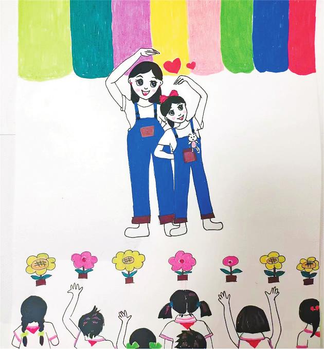 点评:小作者使用清晰流畅的线条和简洁和谐的色彩,勾画出缤纷多彩的场景和纯粹美好的幸福。作品构图有层次感,简单场景却能生动展现美丽、柔软、纯真的内心,流淌着浓浓的幸福滋味。