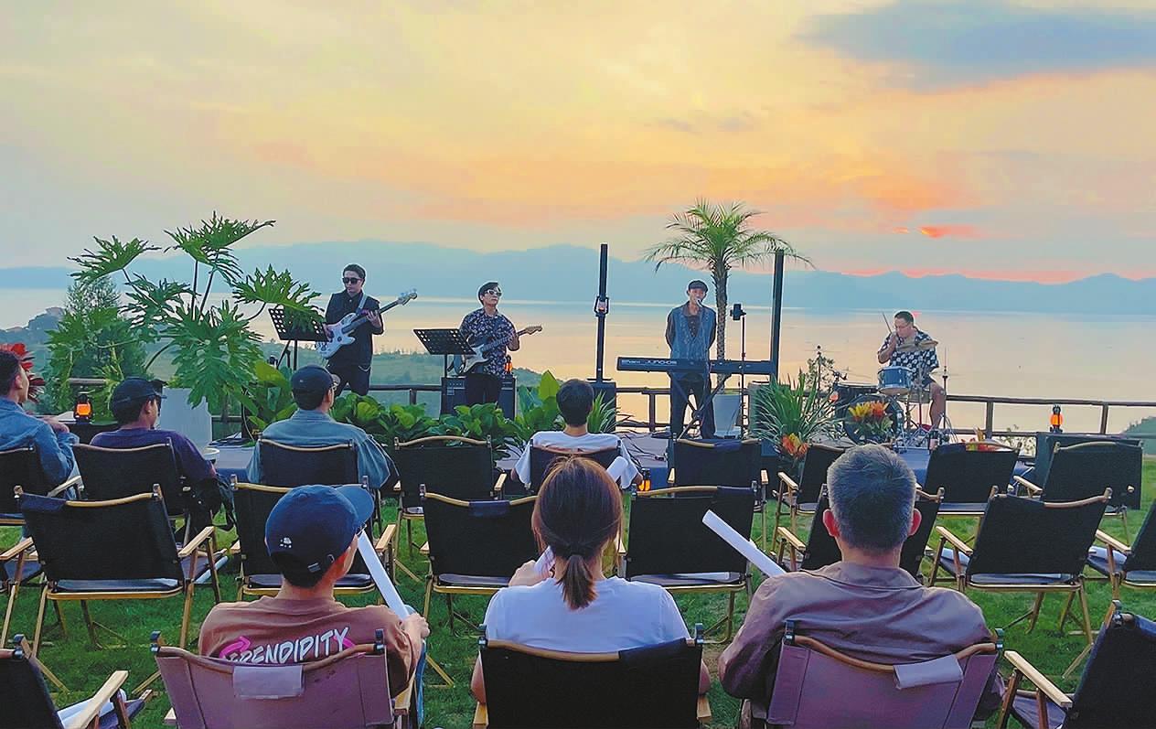 近日,一场由小湾村民宿经营者自发举办的 “落日音乐会”在抚仙湖北岸小湾村日落星野营地举行,夕阳、美景、美食……伴随着动听的音乐,为游客献上了一场精彩纷呈的视听盛宴。近年来,澄江市小湾村依托民宿集群基础和背山面水的优越地理位置,引进 “小型演艺、露营地、帆船”等新业态,开发咖啡、烧烤等场景消费类产品,为游客提供多元化选择,丰富游客度假生活。 通讯员 董乙泽 赵艳红 摄