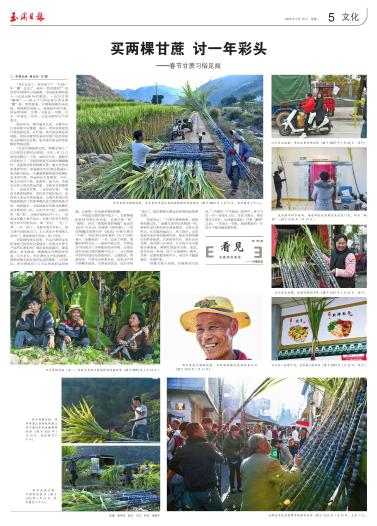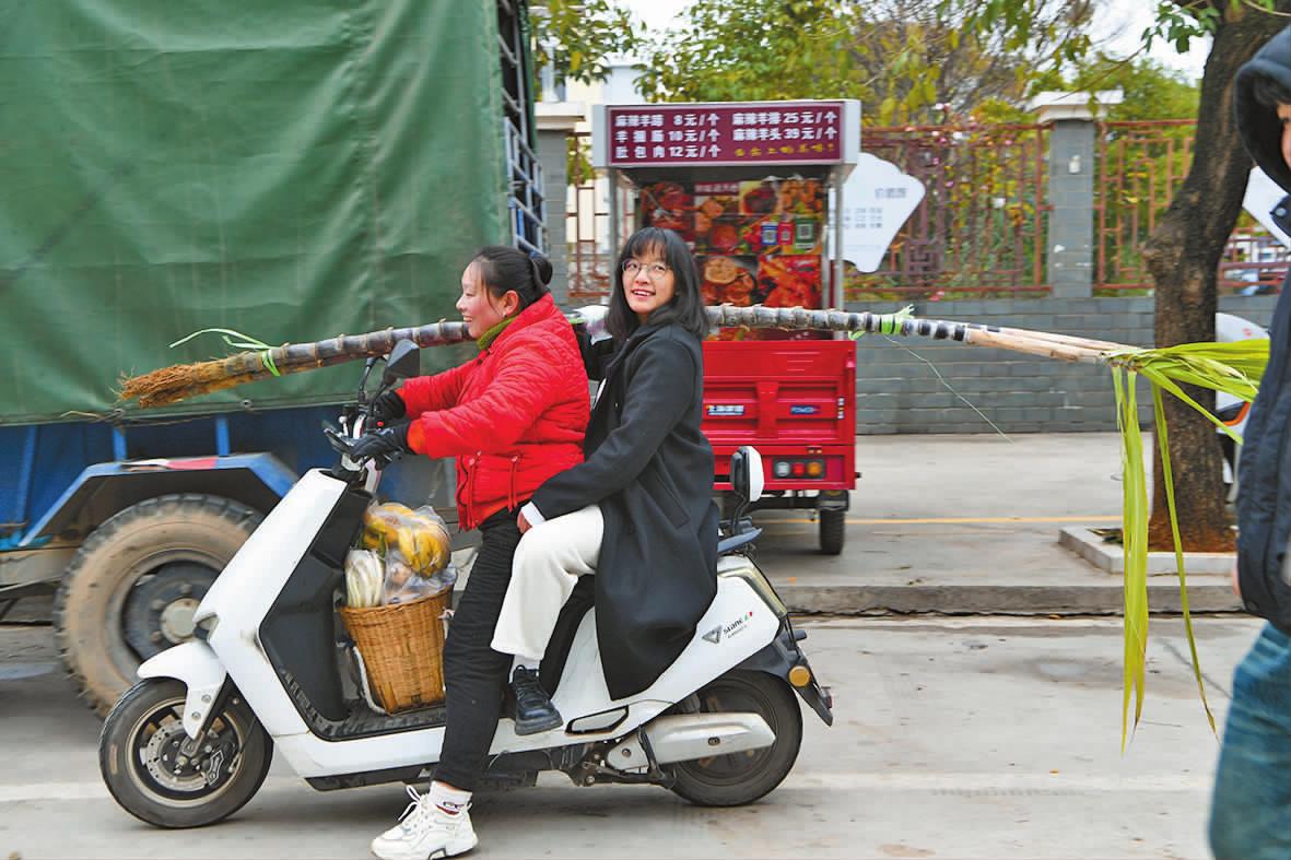 | 江川区九溪镇,市民扛着甘蔗回家(摄于2025年1月28日,除夕)。 |