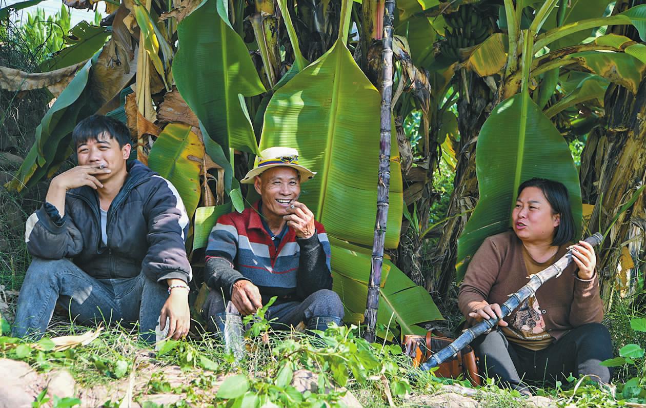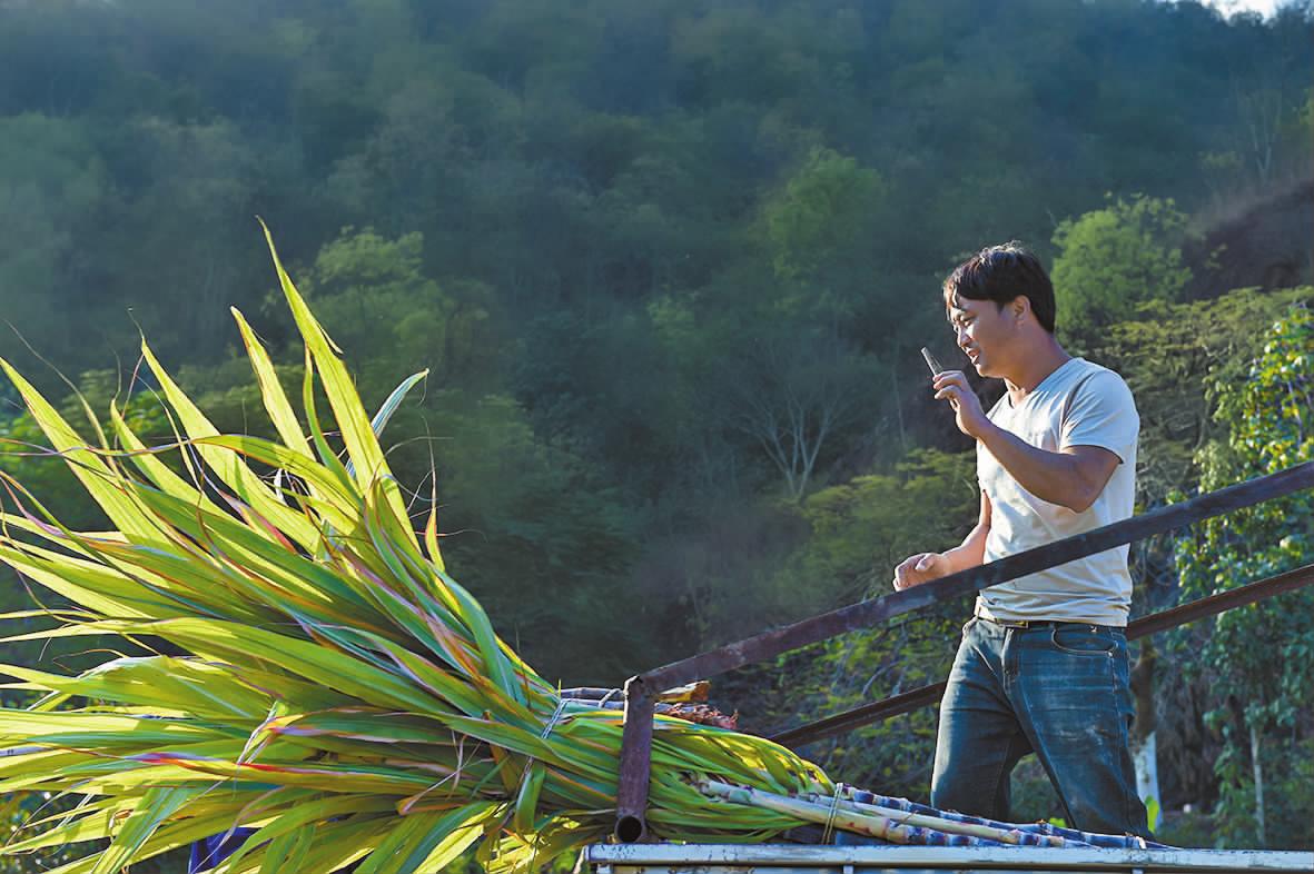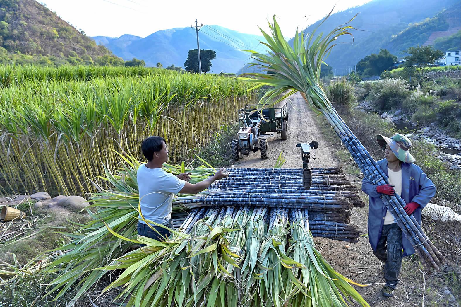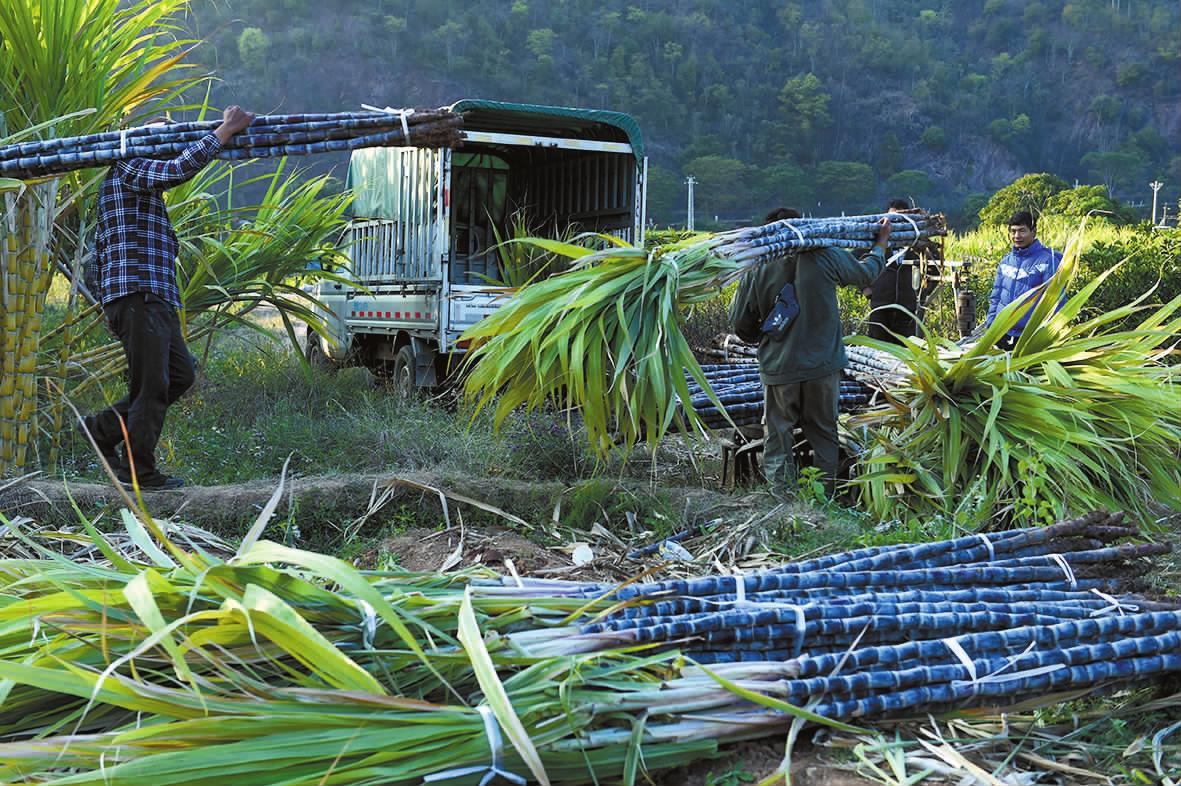 | 江川区的王映(右一)在新平县漠沙镇峨德村收购甘蔗(摄于2025年1月23日)。 |