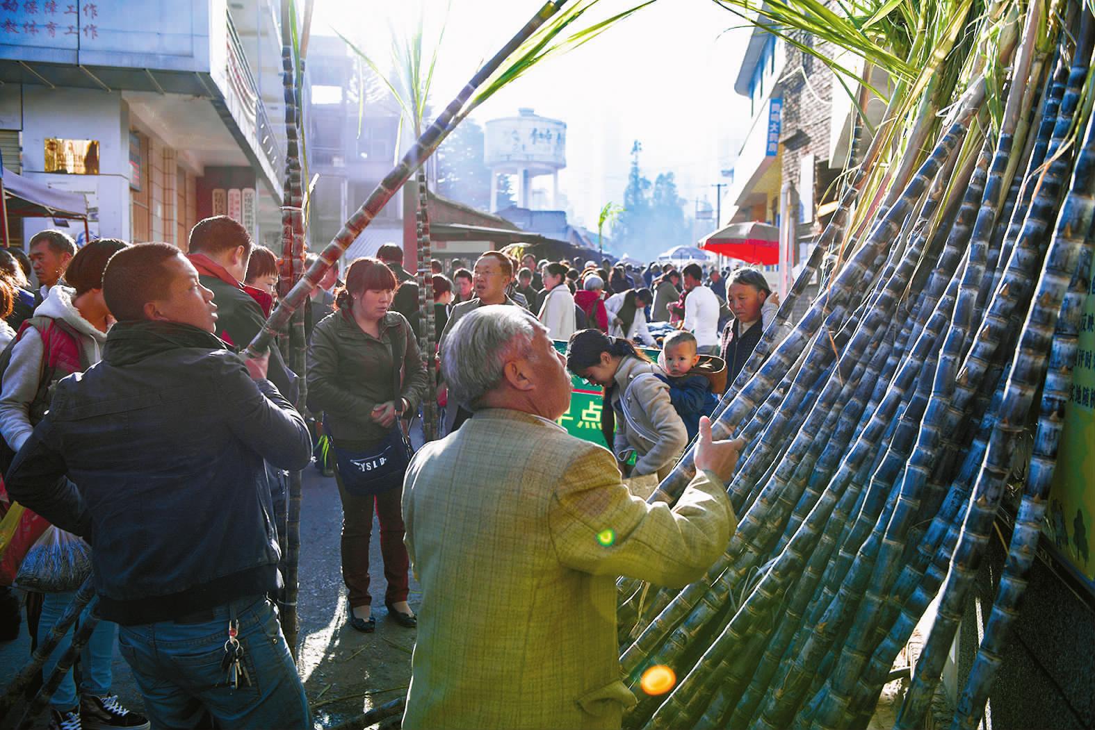 | 红塔区市民在集贸市场购买甘蔗(摄于2014年1月30日,大年三十)。 |