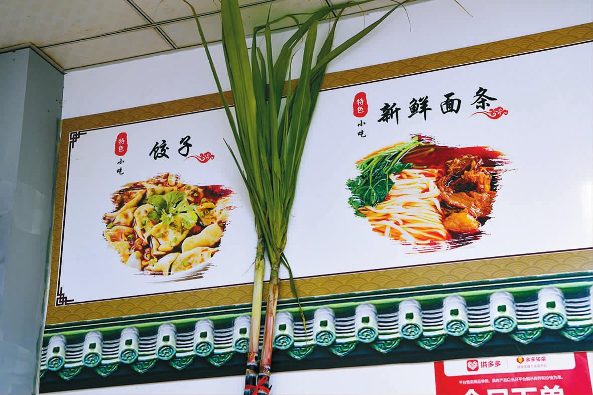 | 江川区一家餐厅内,靠在墙上的甘蔗(摄于2025年1月28日,除夕)。 |
