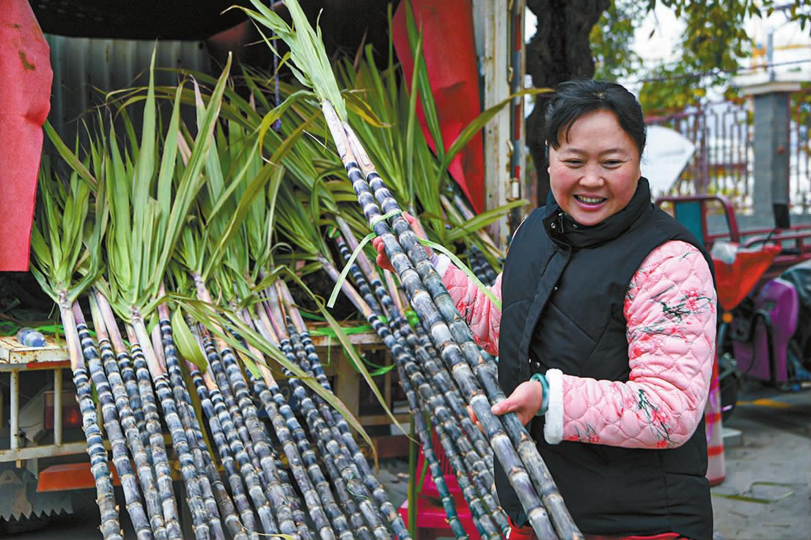 | 江川区九溪镇,选购甘蔗的市民(摄于2025年1月28日,除夕)。 |