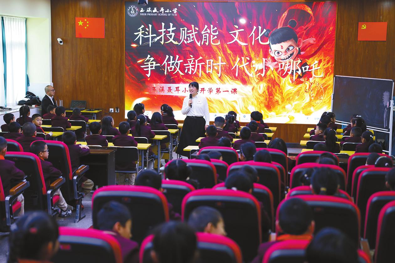 本报讯(记者 宋蝶/文 沈阳/图)一面在西藏军区查果拉哨所升起过的国旗,一段跨越雪域高原的追“光”故事,一堂哪吒遇上AI的趣味班会……2月24日,玉溪聂耳小学新兴校区(以下简称“玉溪聂耳小学”)的“开学第一课”格外生动且意义非凡。 新学期,新气象。学生们穿着干净的校服,佩戴鲜艳的红领巾,朝气蓬勃地在操场上整齐列队,准备参加开学典礼。早上8点30分,全校师生庄严肃立,目光望向操场中央,一面曾在海拔5318米的查果拉哨所升起的国旗,伴随着激昂的国歌声,在学校的操场上缓缓升起,鲜红的旗面上依稀可见风雪的印记,爱国之情在每个人心中升腾。 升旗仪式后,校长杨翠英为同学们分享了这面国旗背后的故事。寒假期间,杨翠英和学校教师跟随云南省“情系边海防官兵”专项慰问团前往位于西藏军区的查果拉哨所开展慰问活动。查果拉哨所作为我国海拔最高的驻兵点之一,条件十分艰苦,边防战士们却始终坚守岗位,守护着祖国的边疆,他们不畏严寒、不惧困难的精神,深深触动了在场的每一个人。 同时,杨翠英也将玉溪聂耳小学学生精心准备的贺卡、录制的歌曲等礼物带到了哨所。这些礼物传递着学生们对边防战士的崇敬与感激之情,而杨翠英从查果拉哨所带回的国旗,也成为连接学校与哨所、学生与边防战士之间的特殊纽带,承载着满满的爱国情怀。 开学典礼结束后,学校还开展了主题班会,校长和老师们继续深入分享这场意义重大的“追光之旅”,进一步和同学们讲述哨所的故事。“今天举办的活动,目的就是让学生们更加深刻理解爱国的含义,激励他们要爱党爱国,努力学习,将来为祖国的繁荣富强贡献自己的力量。”杨翠英说。 此外,“科技赋能文化 争做新时代小哪吒”主题班会接力开展。学校创新地运用AI技术,让学生们与近期爆火的动画电影人物“哪吒”进行“对话”。通过这种新颖的方式,让学生们不仅增强了对中华优秀传统文化的了解和热爱,提升文化自信,同时也对先进科技有了更直观认识,激发了他们对科学技术的兴趣和探索精神。 “我非常喜欢哪吒,他勇敢不怕困难的精神值得我们学习,老师用AI技术让我们和哪吒对话,我觉得特别有趣。”玉溪聂耳小学二年级(7)班的学生唐梓然说。 本次开学活动,通过爱国主义教育与科技文化体验的结合,为学生们上了一堂生动的“开学第一课”。在新学期里,学生们将带着这份爱国热情和对科技文化的热爱,在学习和生活中不断进取,努力成长为新时代的优秀接班人。 |