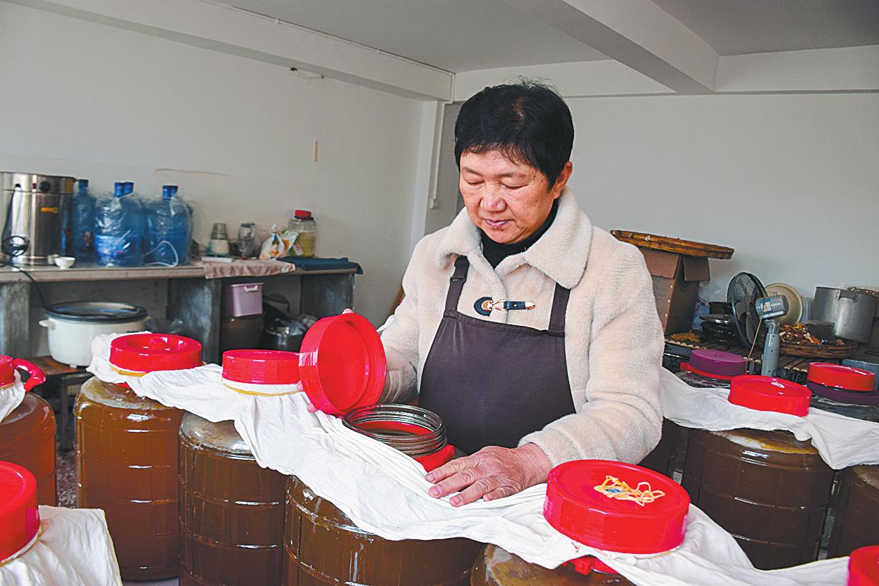 把“非遗醋”发扬光大 普玉华告诉记者,“老味醋”的第一代传承人名叫段忠礼,是她婆婆的父亲。段忠礼自幼跟随长辈以做麦芽糖和蒸卷粉为生,掌握了用麦芽糖水和麦芽渣的二次利用制作老醋的技艺。第二代传承人名叫段竹仙,也就是她的婆婆,婆婆从其父那里学会了制醋的技艺。第三代传承人就是她自己。第四代传承人名叫尹绍波,是她的儿子,目前已能熟练掌握制醋方法。 作为华宁“老味醋”的第三代传承人,普玉华深感非遗技艺的传承之路并非坦途,因为现在的年轻人喜欢方便快捷的食品,很多人都不愿意学,只有年龄稍大一点的人会来店里要醋衣去“养”,但大都“养”坏了或没有时间管,少部分“养”活的醋味也不正宗。目前,普玉华的华宁“老味醋”入选了第三批县级非物质文化遗产代表性项目推荐名单,普玉华表示她最大的愿望就是将自己的制作技术传授给更多的人,让华宁“老味醋”发扬光大。 “我做酸醋生意三年多,全省各地的醋都尝过了,华宁‘老味醋’在酸度、纯度、香度都算是最好的。我每隔一段时间就要来批发一两百公斤,拿回去加工成玫瑰醋、苹果醋等销往全国各地。”江川人王国春不仅是华宁“老味醋”的经销商,也是传承人之一。在普玉华制醋的小作坊内,王国春品尝着不同醋缸内的“老味醋”,两人还就老醋的酸度等问题讨论着。 现在,由于销路越来越广,普玉华的酿醋小作坊的产量已远远不能满足目前的销量。下一步,普玉华准备把小店后面的一间闲置的房子租下来,扩大生产、改善包装,做大做强酸醋产业,让华宁“老味醋”香飘四方。 |
