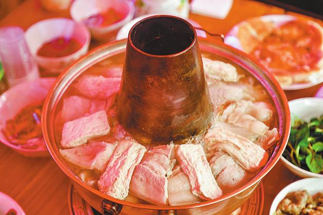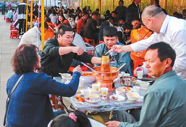 决定炊锅菜品质的关键 对于传统的铜制火锅,江川人更愿意称之为炊锅,而炊锅菜的制作与吃法和人们常规认知的吃法不同。 当地的炊锅菜,是将蔬菜和肉类等食材分层放于锅中,再加入高汤煮制,使食材在煮制中逐渐入味。而汤汁在炊锅高温熬煮下,散发出醇厚的香气,并渗透进每一层食材中,使其既保留各自的鲜美,又融合出独特的味道。 现年54岁的赵晓坤是江川一家餐饮店的资深厨师,拥有30年的烹饪经验。对于炊锅菜的制作,他认为,精心熬制的高汤以及食材的新鲜,是决定炊锅菜品质的关键。 制作炊锅菜,要使用筒子骨熬制高汤,并将制成的高汤倒入炊锅内,把排骨、鸡肉、鸭肉焯水后放入锅中用炭火煮制,经过30分钟左右的高温烹煮,肉类食材的精华与高汤完美融合,汤汁更加浓郁鲜美。随后,放入萝卜、藕片再次煮制20分钟左右。此时,萝卜和藕片的清甜与汤汁的醇厚相互渗透。之后,再放入毛芋头、小瓜、莴笋、胡萝卜、茨菰、山药等新鲜食材继续煮制15分钟,使各类蔬菜的香气与汤汁再次交融,形成独特的复合口感。接着,放入白菜、茴香等易熟蔬菜煮制,让它们迅速吸饱汤汁的同时,保持其脆嫩口感。最后,三线肉、酥肉、午餐肉和豆腐等食材的加入,使整锅菜肴更加层次丰富、口感多样。 赵晓坤说:“炊锅菜从制作到完成大概需要两个多小时的时间,其菜品由5层组成,每一层都承载着不同的味道,层层递进,回味无穷。而每层顺序的改变,则会带来味道和口感上的差异。另外,蘸水的好坏也能左右炊锅菜的味道。传统炊锅菜的蘸水由煳辣椒、葱花、香菜、大蒜等调料组成,浇上鲜美的汤汁,便能激发出食材的深层风味。其中,煳辣椒的独特辛香是蘸水的‘灵魂’,能瞬间唤醒味蕾,让人在咀嚼中感受到独特的香辣与鲜香交织。” 据记者了解,炊锅菜虽是江川当地的一道特色美食,但除江川外,红塔区、澄江市、通海县等地也都有炊锅菜的身影。它们的做法大同小异,只是因地域差异,呈现出了不同的风味和口感。