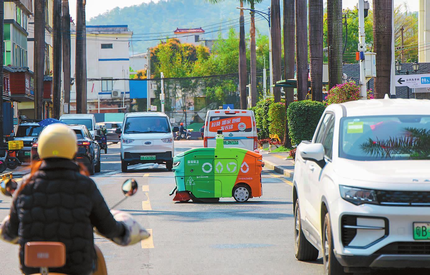 3月19日,在深圳市坪山区石井街道,环卫机器人在清扫过程中自行过马路。环卫机器人能够自主识别垃圾、自动返回基站倒垃圾并加水,与环卫工协同配合完成复杂道路清扫工作……近年来,深圳市坪山区积极打造全域全时全场景人工智能环卫机器人集群应用示范场景,已在坑梓街道、石井街道等区域建成人工智能环卫作业示范区,设立2个人工智能环卫运营指挥中心和8个智能补给站,投入59台人工智能环卫设备。 新华社记者 毛思倩 摄(新华社3月25日发)