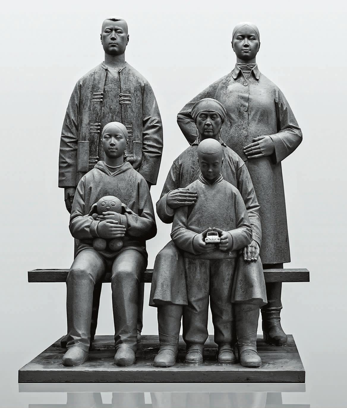 2024年,他以自己的家庭成员为素材创作的雕塑《全家福》,原本只是为了记录家庭时光,却意外入选全国美展——当年整个云南省仅有三件雕塑作品入选,《全家福》便是其中之一。这组作品以写实手法呈现家庭团聚的场景:站立者身姿挺拔,就座者神态各异;人物身着哈尼族特色服饰;材质选用普通的石头,色调偏灰并经过做旧处理,既显雕塑的厚重感,又传递出岁月沉淀的亲情。“无所求的时候,反而会有意外的惊喜。”李桥明说,创作《全家福》时,他反复修改,耗时一年才完成,甚至在创作后期,让雕塑中的妻子怀上了三胎,恰好寓意着美好的传统观念,让作品更具现实意义。
