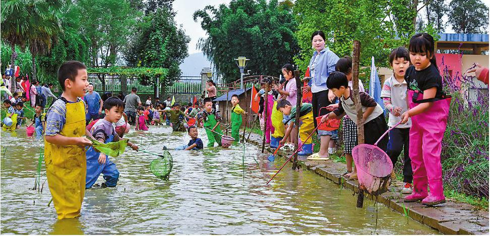 稻田间,幼儿在老师与家长的带领下赤脚插秧、捕捉稻花鱼,笑声伴着水声荡漾;竹编工坊里,学生指尖翻飞,竹篾化作兼具实用与美感的篮筐;校园责任田边,师生合力采收蔬果,丰收喜悦映红脸庞……这些鲜活场景,是玉溪市中小学、幼儿园深耕劳动教育的日常写照。